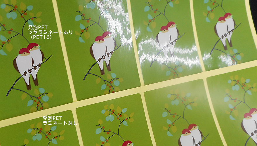 印刷インクの載りの良いツヤ無し金・銀フィルムをご利用の場合は、ツヤラミネート加工をすることでシール全体にツヤ感を出すことができます。