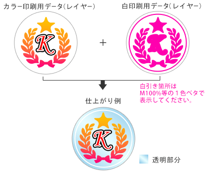 白引きを希望の場合は、デザインデータのほかに白引きしたい箇所を表示したデータが必要になります。