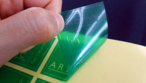 透明の透け、金銀ホログラムの光沢などの影響をやわらげフルカラーの印刷の色味がわかるようにします。
